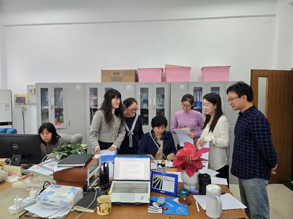两位教授深入学院各教研室,从教学核心环节展开全方位“精准查体”。仔细审阅和核查各课程试卷命题的科学性、评分标准的严谨性及归档的规范性,为试卷结构优化提出具体建议;聚焦教学大纲、教学设计、集体备课记录等关键教学材料,逐一指出需完善的细节要点。指导过程中,两位教授围绕认证核心指标与老师们深度交流,不仅让老师们明确了认证材料梳理的规范要点,还针对质量提升给出了可落地的解决方案。