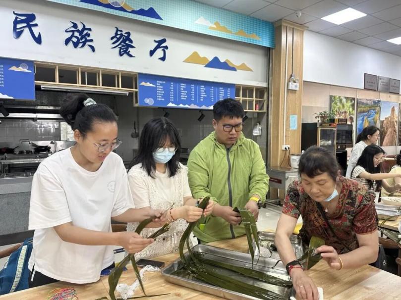 活动现场,师生共同体验包粽子、制香囊、编织五彩绳等传统习俗。汉族师生手把手教授民族同学糯米配比、粽叶折叠技巧,民族学生则分享本民族节日文化,欢声笑语中交织着文化交融的温情。民族学生指出:“粽子不仅是美食,更是团结的象征,希望通过活动让各族师生感受到‘红石榴籽’般的紧密相连。”