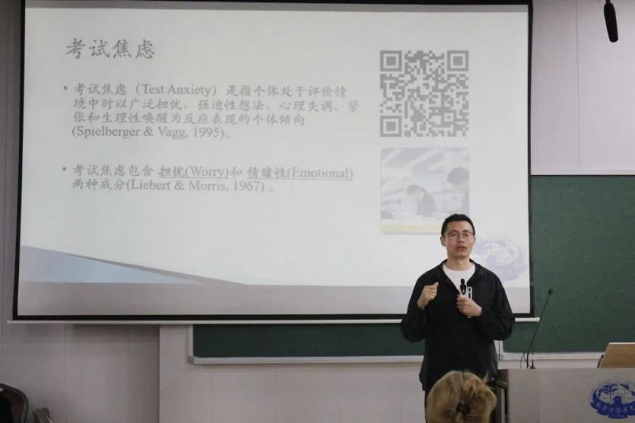 讲座现场,张老师发放了一份考前焦虑自评问卷。结果显示,参与学生中半数以上都处于高焦虑水平。针对此现象,张老师介绍了“书写表达法”:通过书写来释放情绪、重构认知、习惯情绪。在张老师的指导下,学生们亲身体验了书写表达法的功效,在讲座中释放情绪。