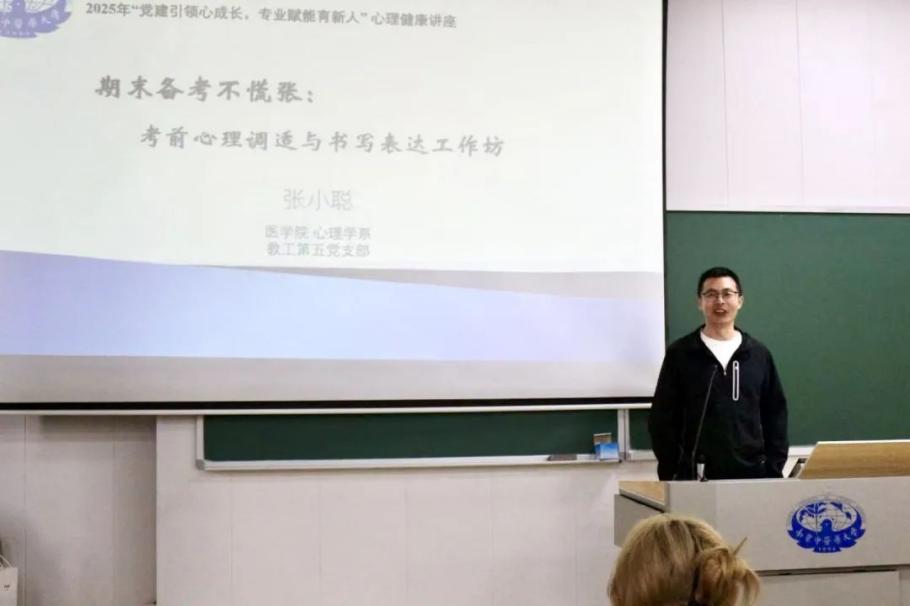 考试周即将到来之际,为切实帮助同学们缓解考前的焦虑情绪,学会科学的减压方法,6月5日,医学院团委邀请了我院心理学系的张小聪副教授,在B4一102教室举办了《期末备考不慌张——考前心理调适与书写表达工作坊》专题讲座。