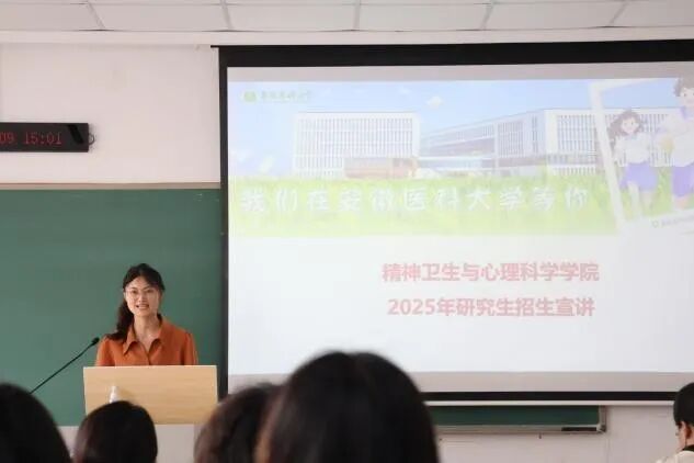 近日,医学院联合安徽医科大学精神卫生与心理科学学院,在B8-209教室举办了2025年研究生招生宣讲活动,宣讲活动由安徽医科大学张荣副教授担任主讲。22级、23级和24级应用心理学专业同学参加。