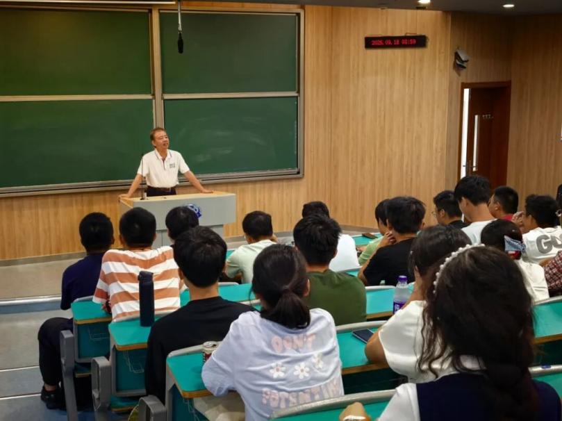 正值“九一八”事变爆发的94周年纪念日,我校关工委“五老”专家徐建云教授为刚踏入校园的新生们,带来了一场意义深远的爱国荣校教育。他带领同学们回顾了中国共产党的百年奋斗历程,引导大家从辉煌历史中感悟初心使命,汲取奋进力量。在爱国主义的情感共鸣之上,徐教授进一步聚焦我校发展历程,向同学们深情讲述了学校从创办至今的风雨岁月。最后,他勉励新生们要尊重历史,爱国爱校,在求学路上脚踏实地、追求卓越,收获精彩人生。