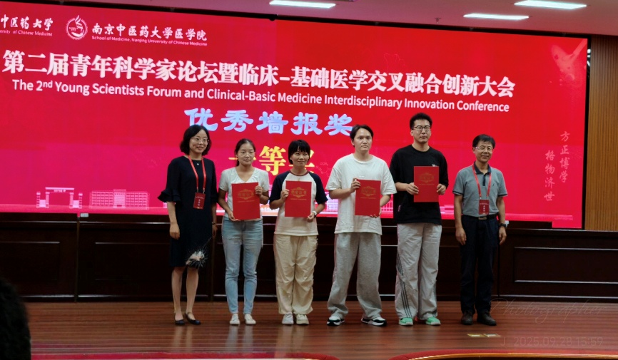 2025年9月27日至28日,南京中医药大学医学院第二届青年科学家论坛暨临床-基础医学交叉融合创新大会在敬文学术报告厅成功举办,由朱立峰教授和张军峰教授主持。我病原生物学系医学微生物学教研室、医学寄生虫学教研室全体师生积极参与此次学术盛会,并在优秀墙报评选中荣获3项一等奖。