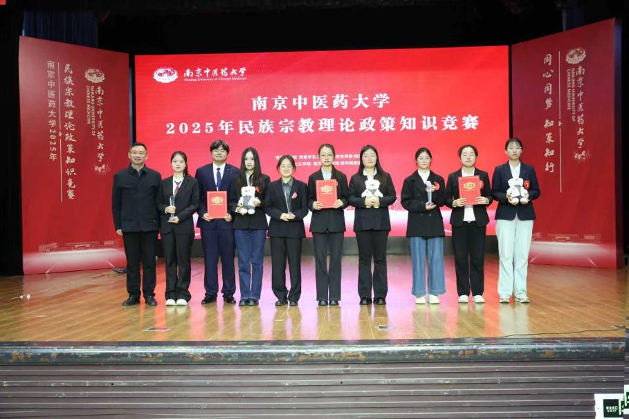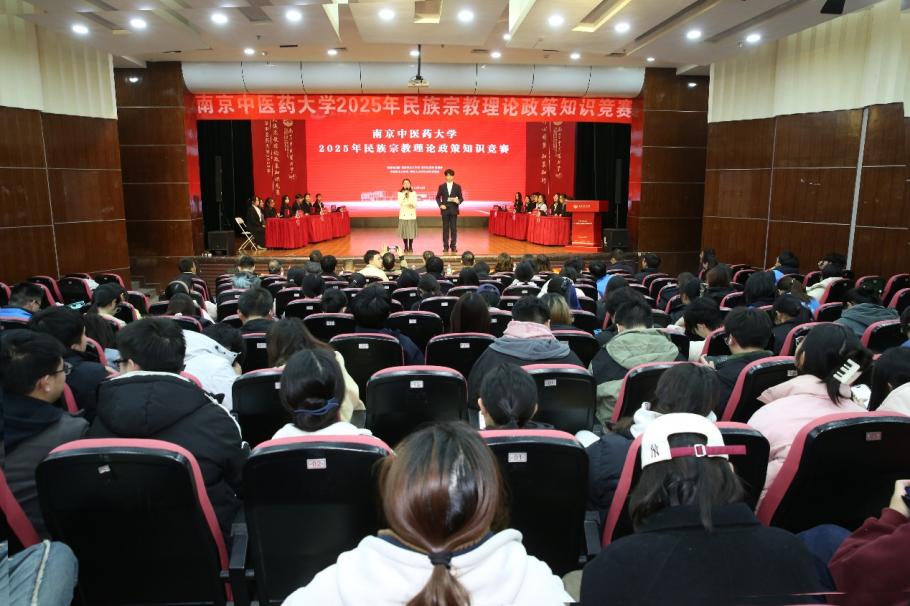 12月10日,南京中医药大学2025年民族宗教理论政策知识竞赛决赛在仙林校区青春剧场举行。本次活动由校党委统战部、学生工作部、研究生党委、校团委及马克思主义学院·医学人文学院联合主办,医学院承办。南京市民宗局副局长饶书华、政法处处长李勇,学校相关职能部门、各学院主要负责人出席决赛现场。