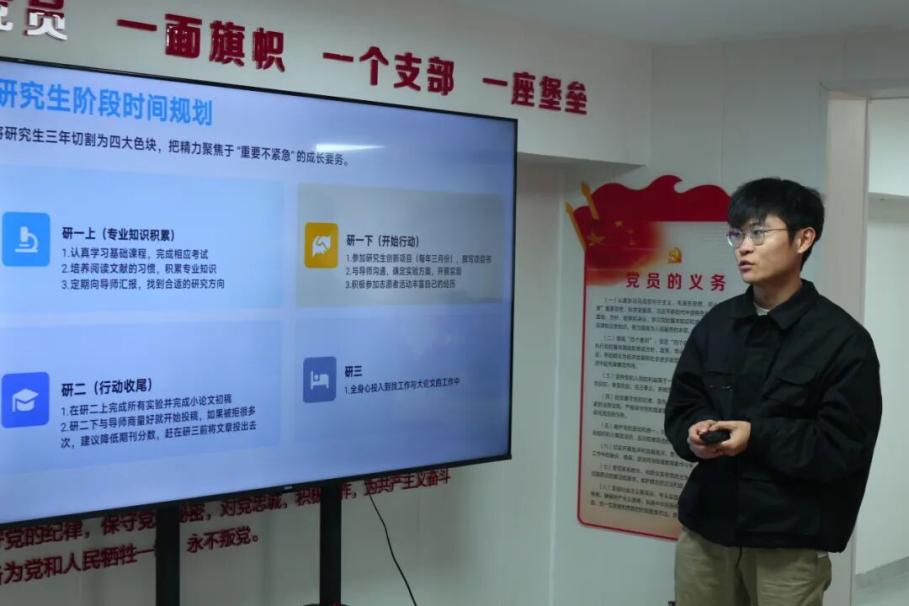 胡馨茹硕士以老年健康研究的深耕之路为题,介绍了她以三年完整的科研规划展示成长路径:研一积累基础、研二聚焦成果、研三统筹升华。她特别强调了“观察-发现-讨论-解决”的科研思维模式,并鼓励同学们积极参与志愿服务和学术培训,全面提升综合素质。